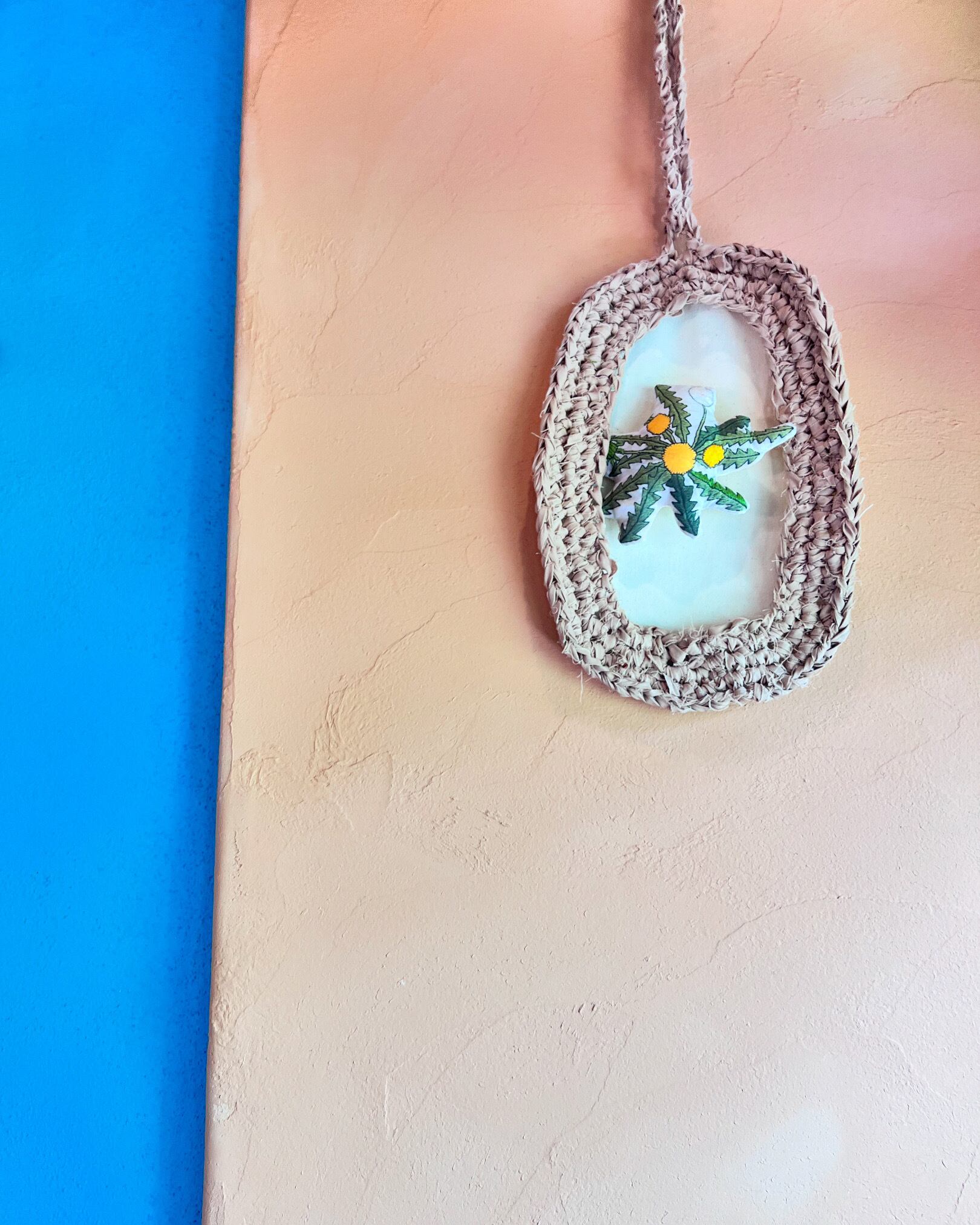 ゆるっとした雰囲気の額縁に刺繍の飾り物がとてもよく似合います。